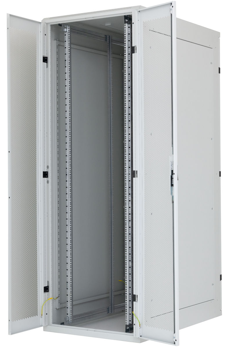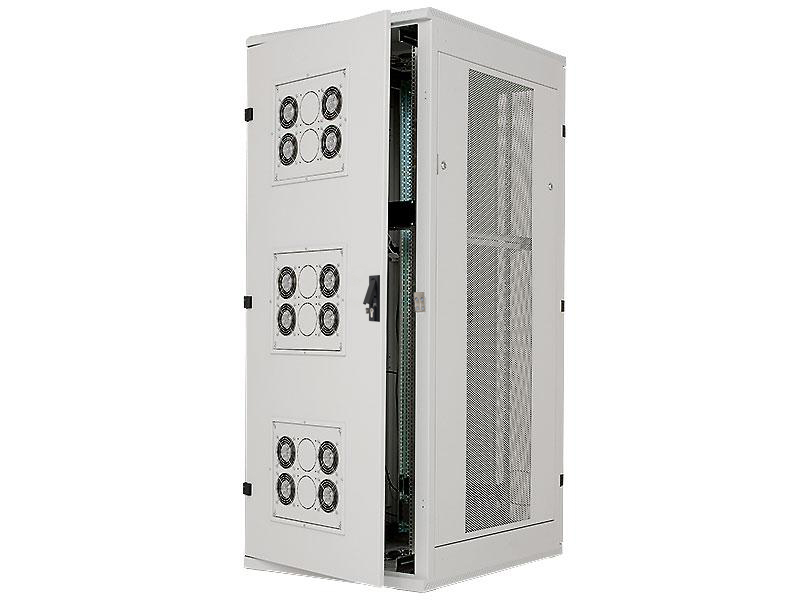 The RDA cabinets have a perforated skeleton to provide cooling air access to the installed technology. Cooling can be supported by the installation of fan units.