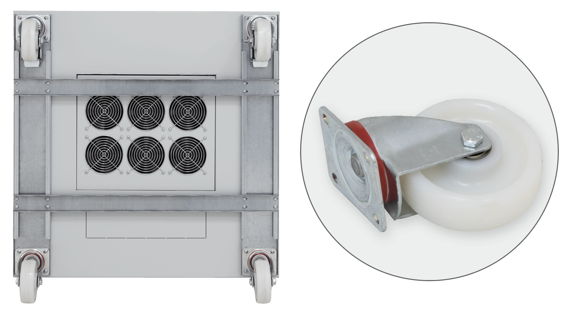 The cabinet can be placed on levelling feet (included) or, with optional equipment, on a base, castors or heavy-duty castors with reinforcing frame.