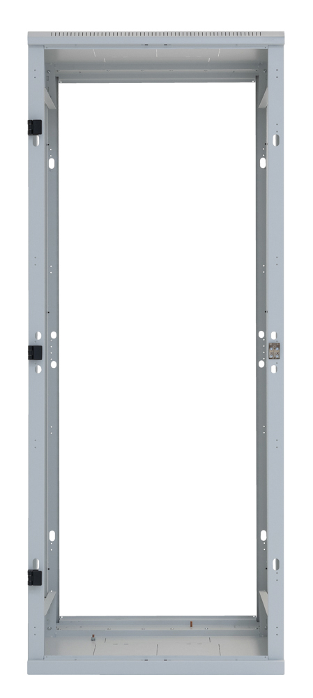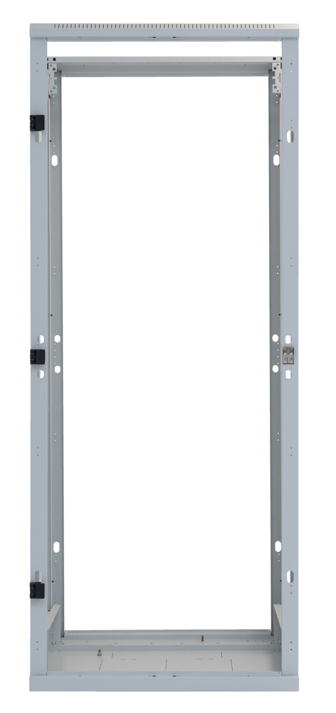 The skeleton rails have mounting holes on the inner edges throughout their entire height. The holes are at the unit spacing of the vertical rails and can be can be used for mounting certain types of accessories.